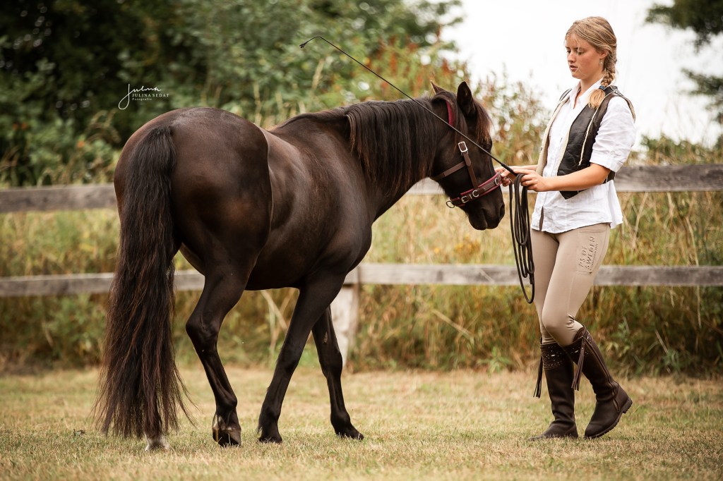 - Insgesamt vier Monate bei Ylvie Fros – Akademische Reitkunst und Centered Riding, 2022 habe ich dort den Groundwork- and Longetest mit Polly gemacht